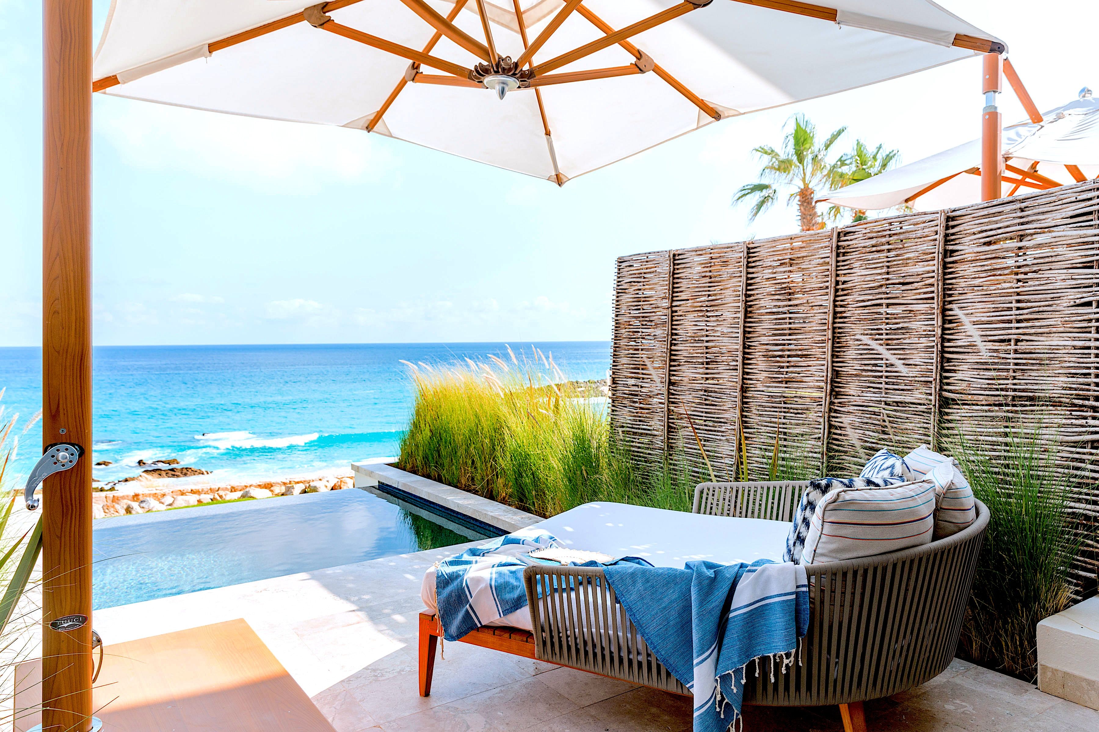 The AltaMar Plunge Pool Suite Oceanfront at Hilton Los Cabos is the resort's most coveted accommodation, offering an unparalleled blend of luxury and natural beauty. Spanning 664 square feet, this ground-level suite features a private plunge pool and patio with unobstructed views of the Sea of Cortez, the perfect setting for the daily floating breakfast for two, served directly in your pool.