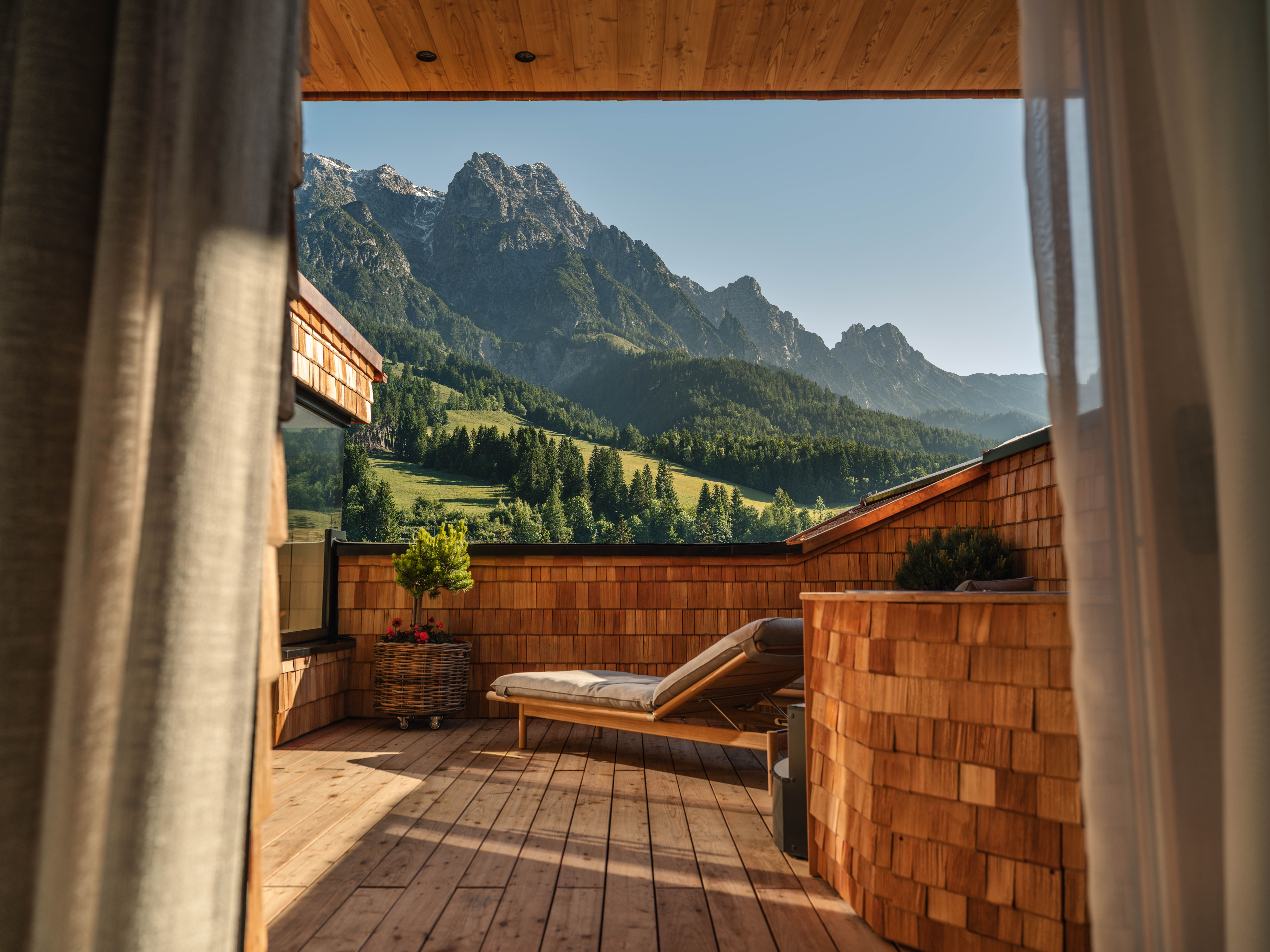 Naturhotel ForsthofgutMountain Loft Suites Forsthofgut’s three Mountain Loft Suites were designed to offer comfort and privacy. Set across two levels, each suite includes a private terrace complete with a sauna and hot tub, all overlooking uninterrupted views of the nearby mountains. Inside, the spaces reflect a refined sense of place, blending sustainable materials with organic textures. Inspired by the surrounding landscape, the design seamlessly merges artisanal craftsmanship with modern amenities, creating a stay that feels both sophisticated and effortlessly functional. | ![]() |